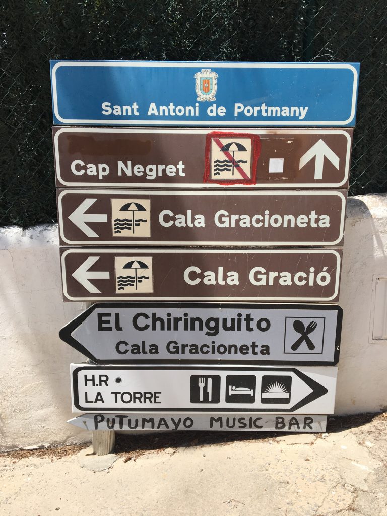 J’ai pris le bus jusqu’à Sant Antoni de Portmany (ligne 3) et j’ai marché environ 30 mn